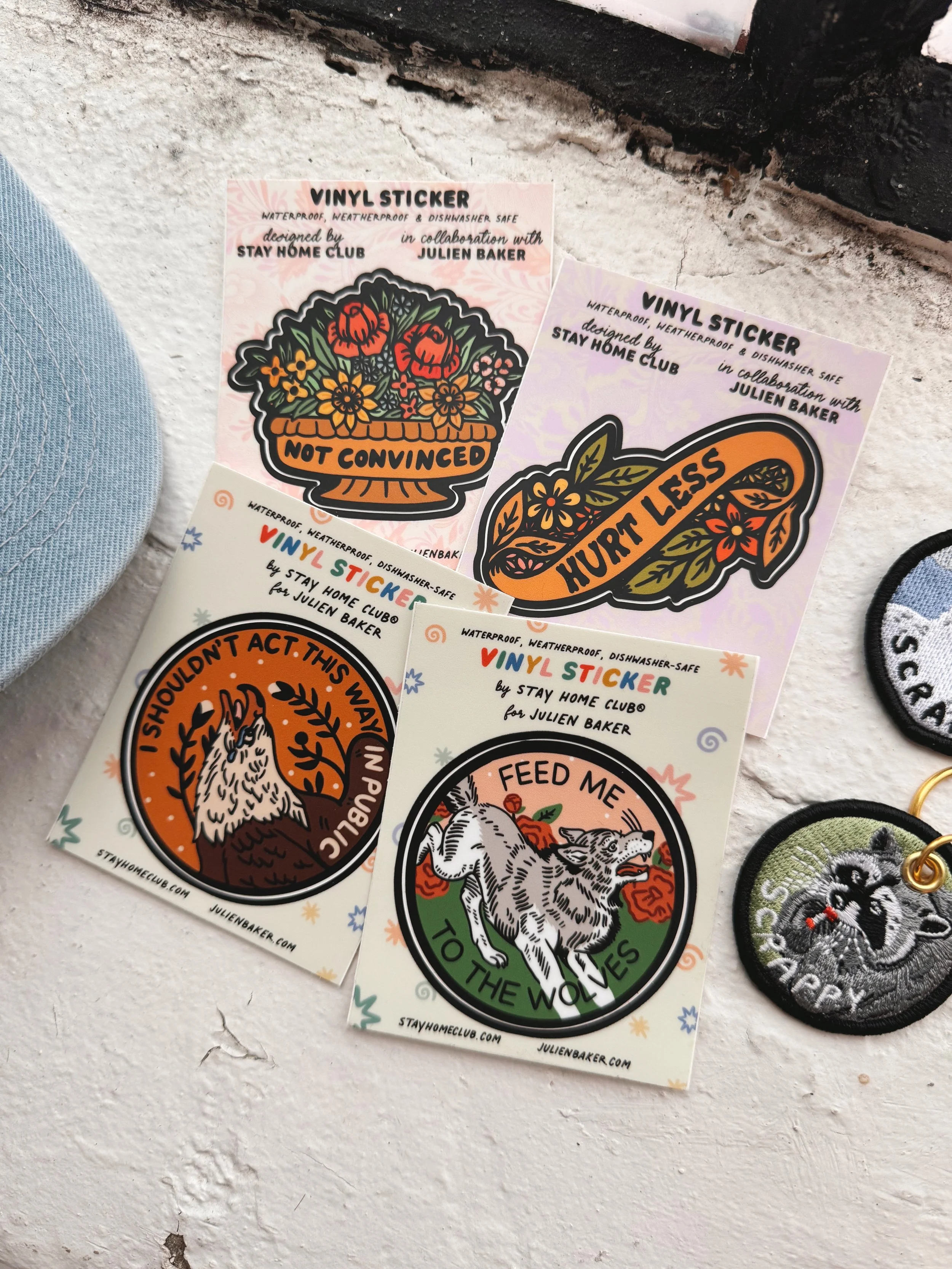 A small collaborative collection with musician Julien Baker, worked on in 2019 and released in 2020. Reworked artwork from the collab was released as stickers in 2024.